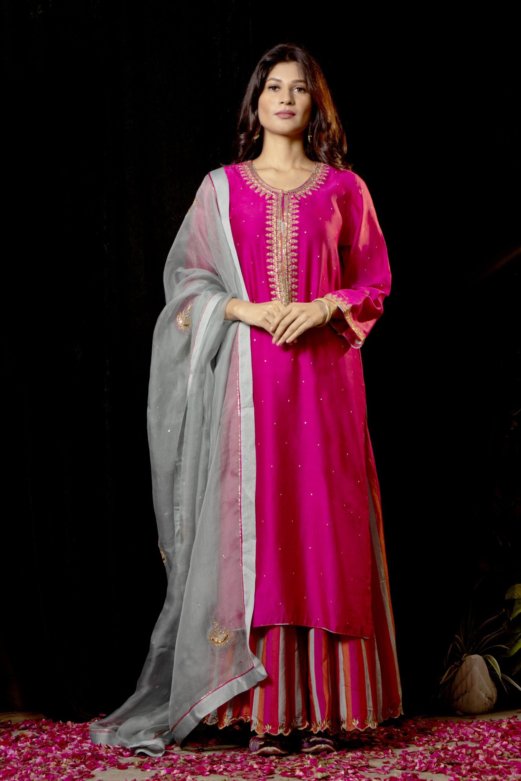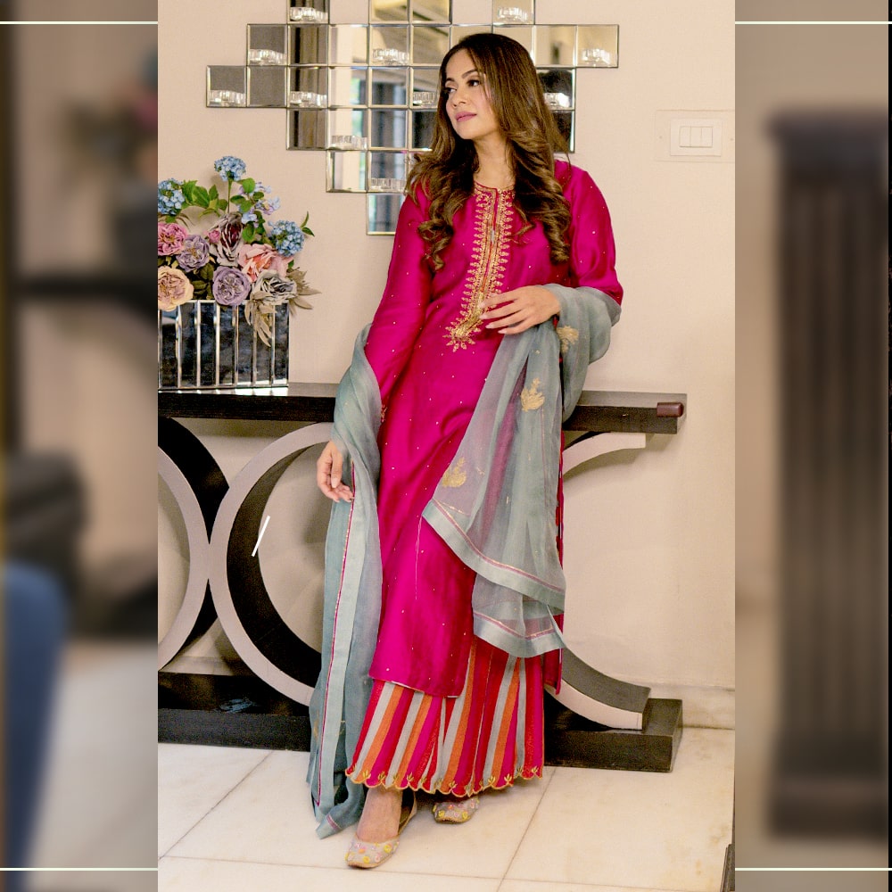 Fabric: kurta – chanderi pallazo chanderi duppata – silk organza
