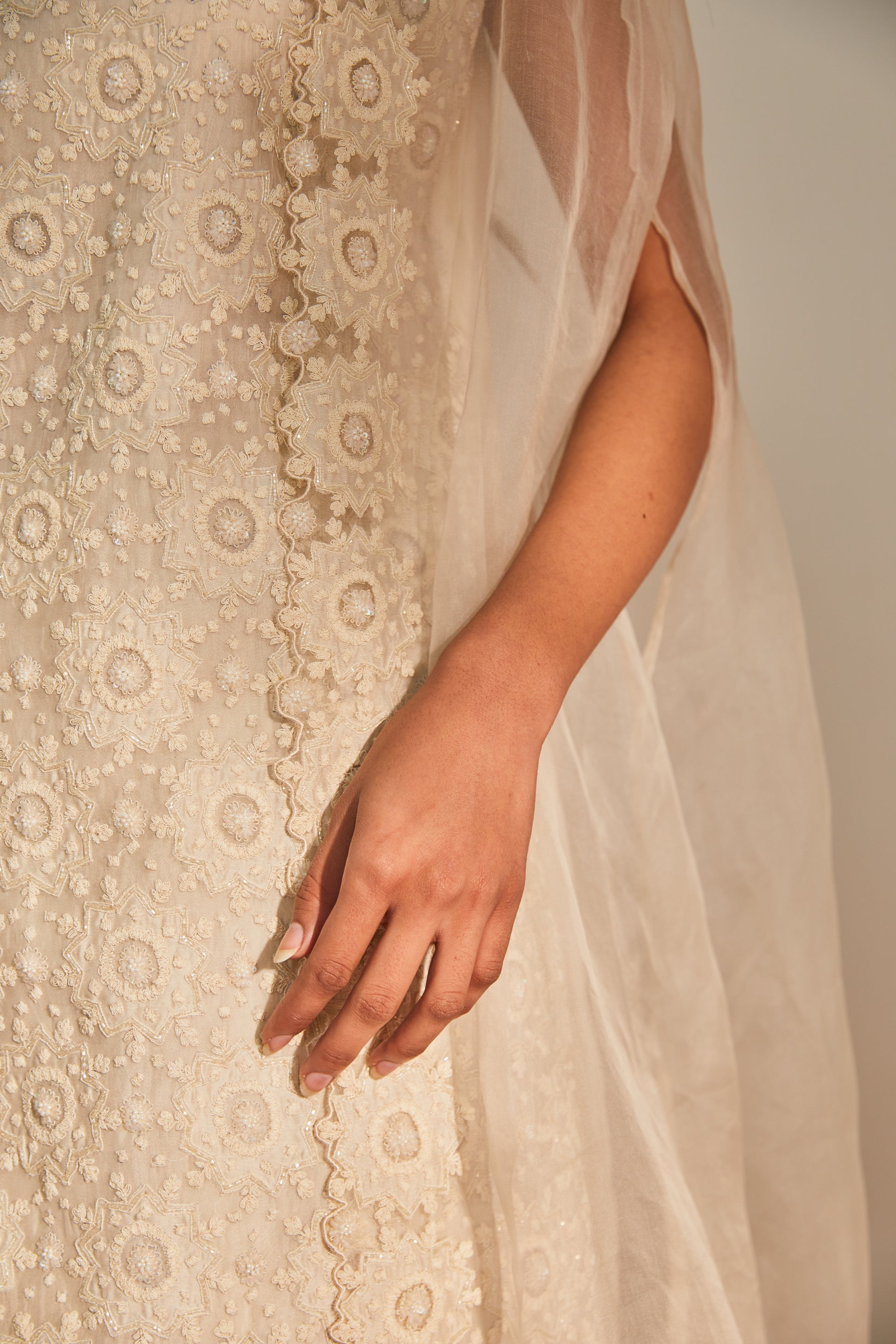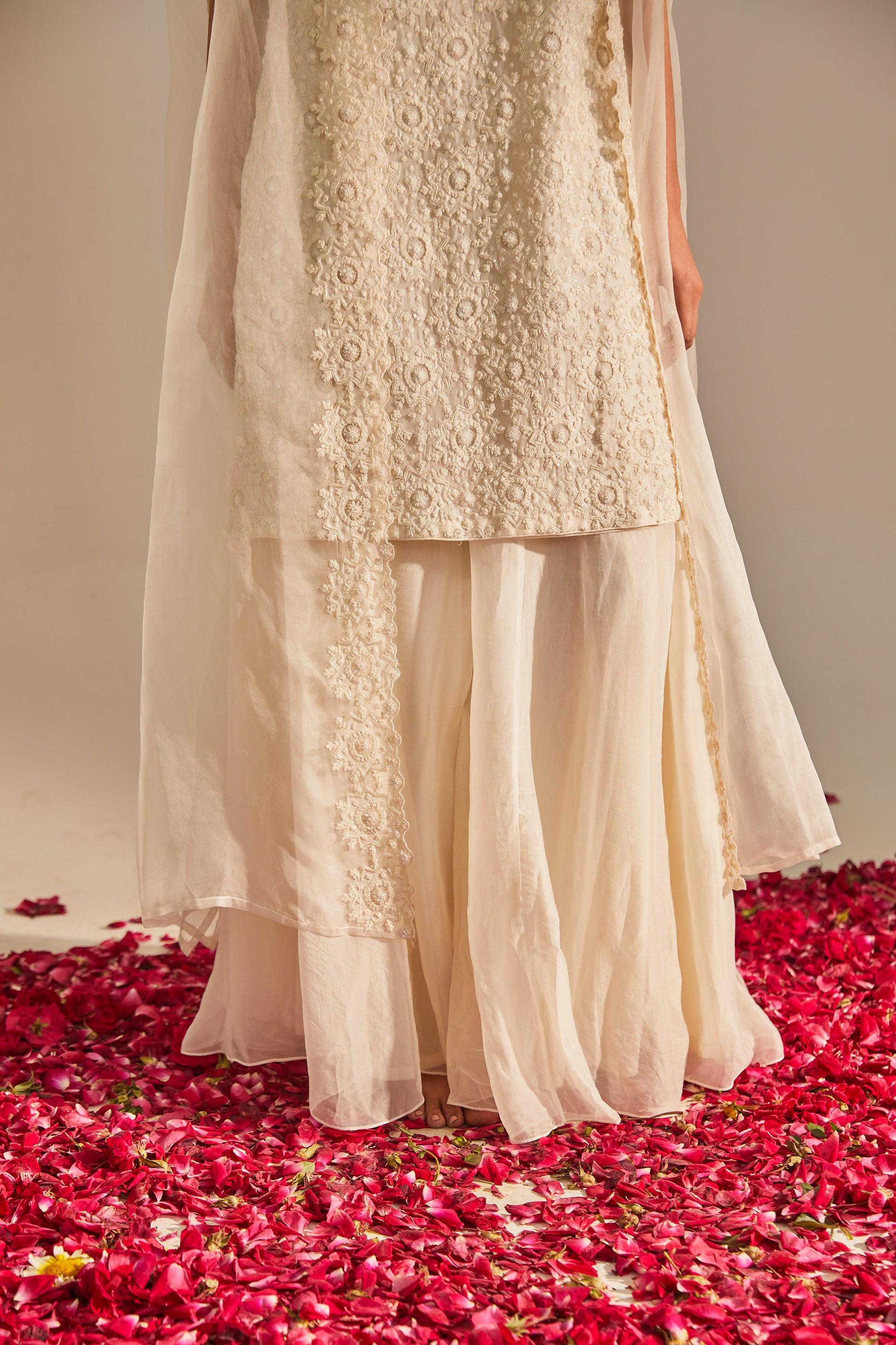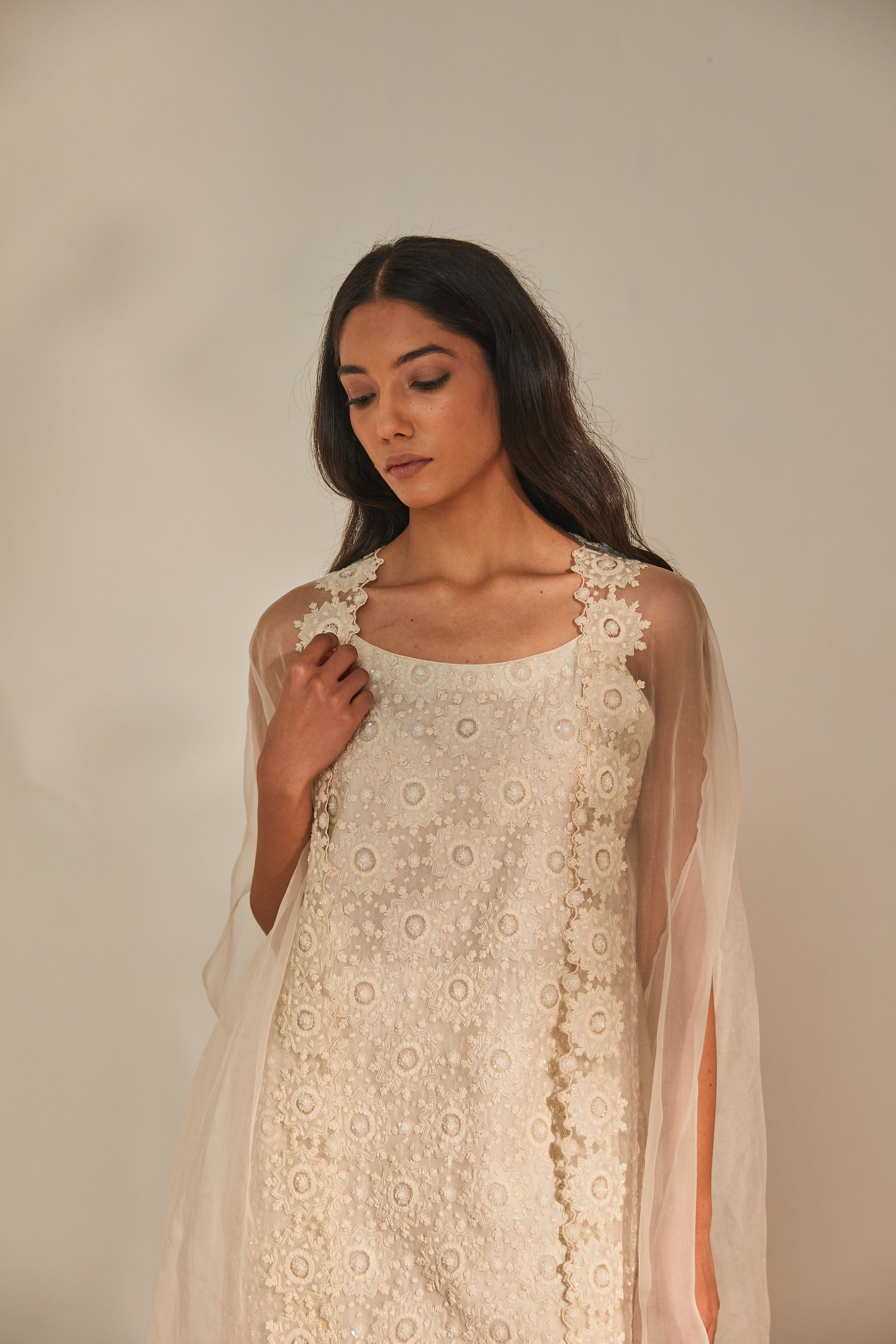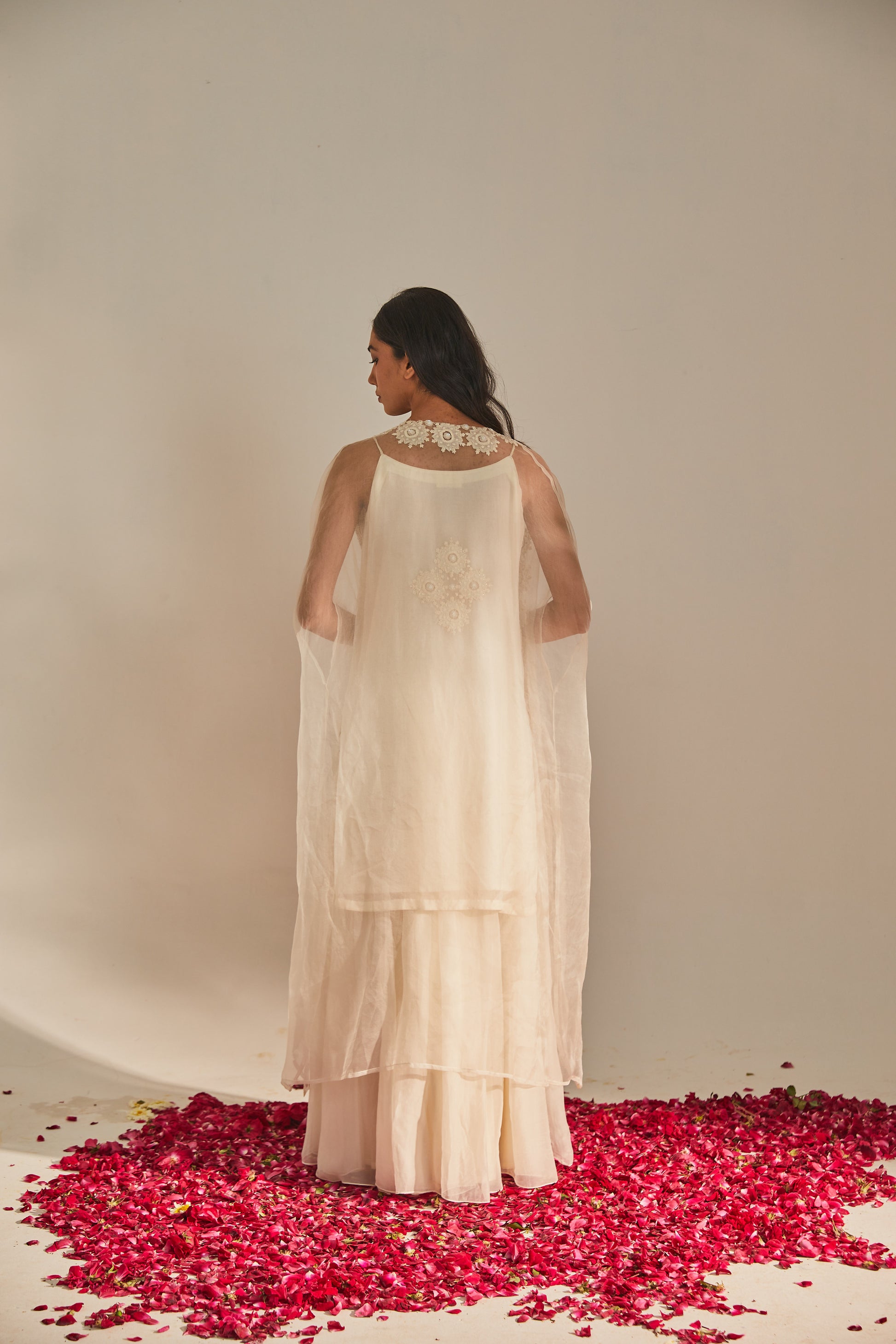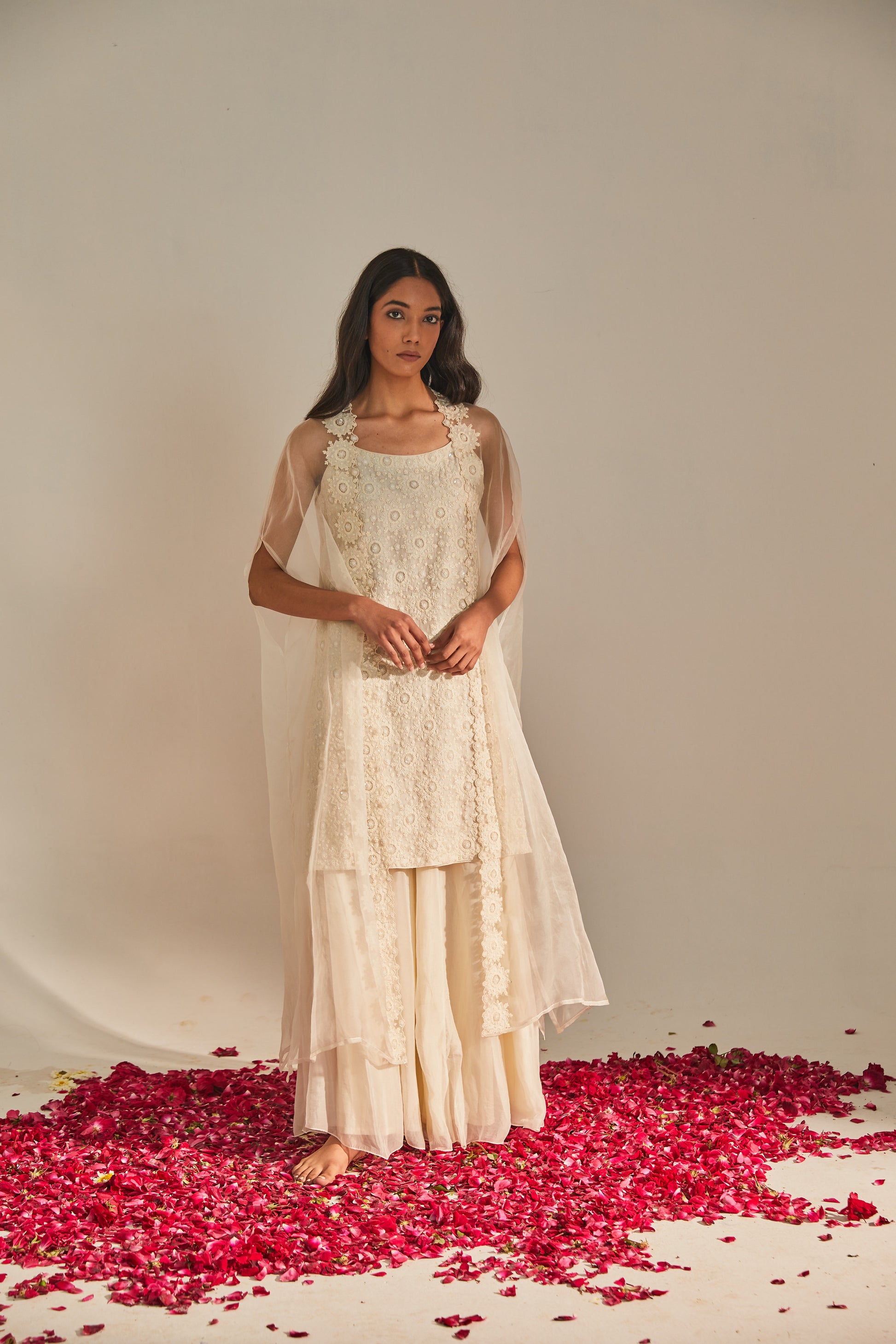 Fabric: Dress - kurta - organza sharara - organza cape - organza