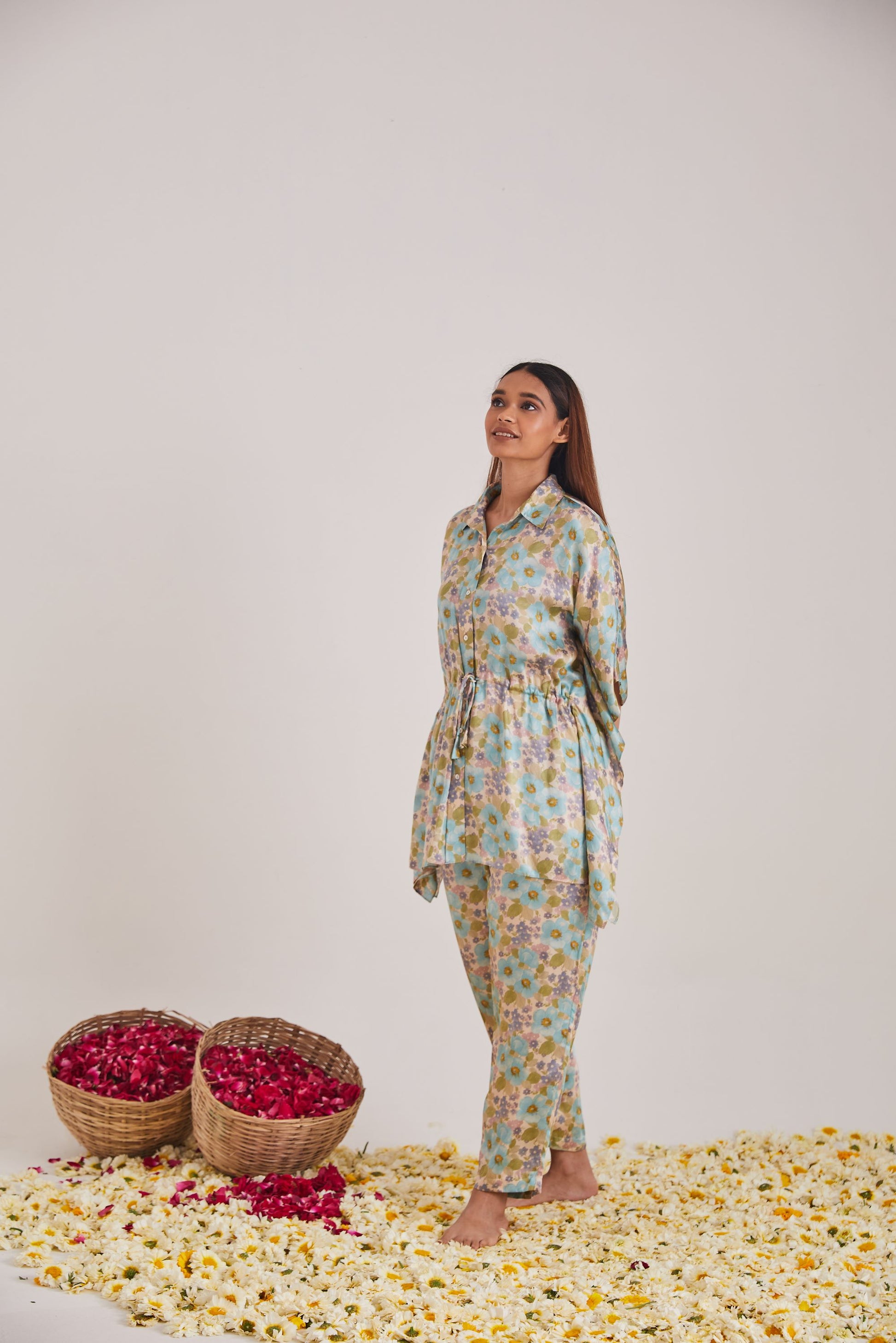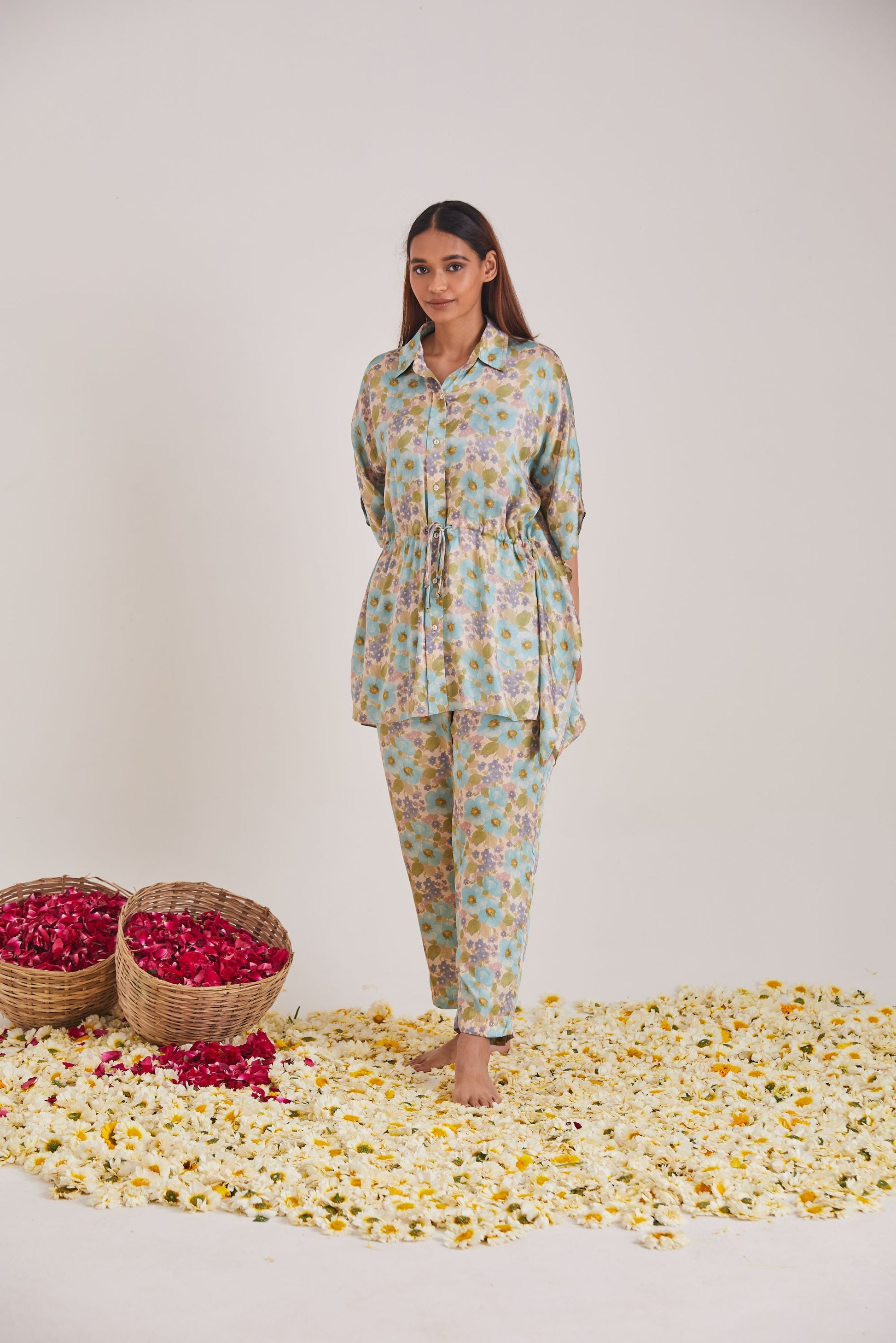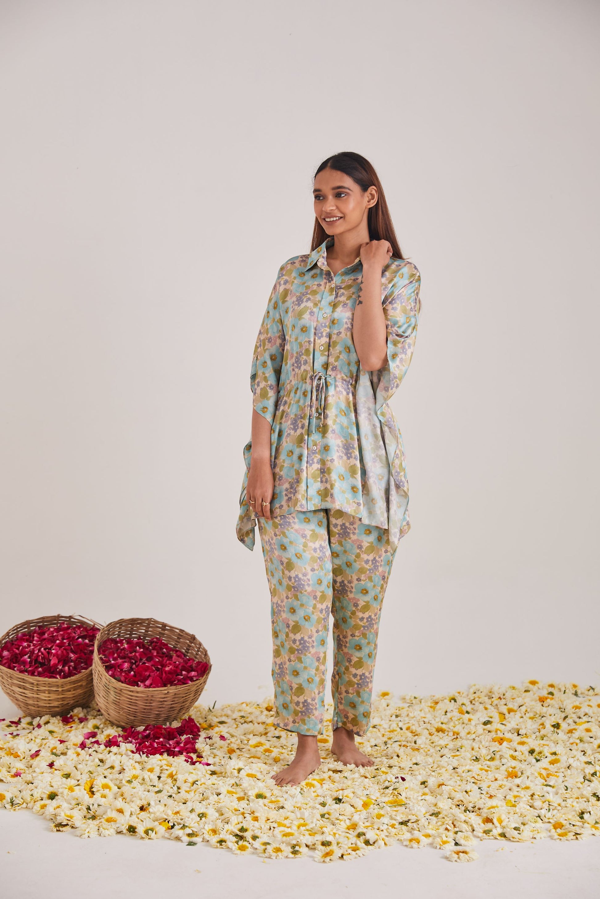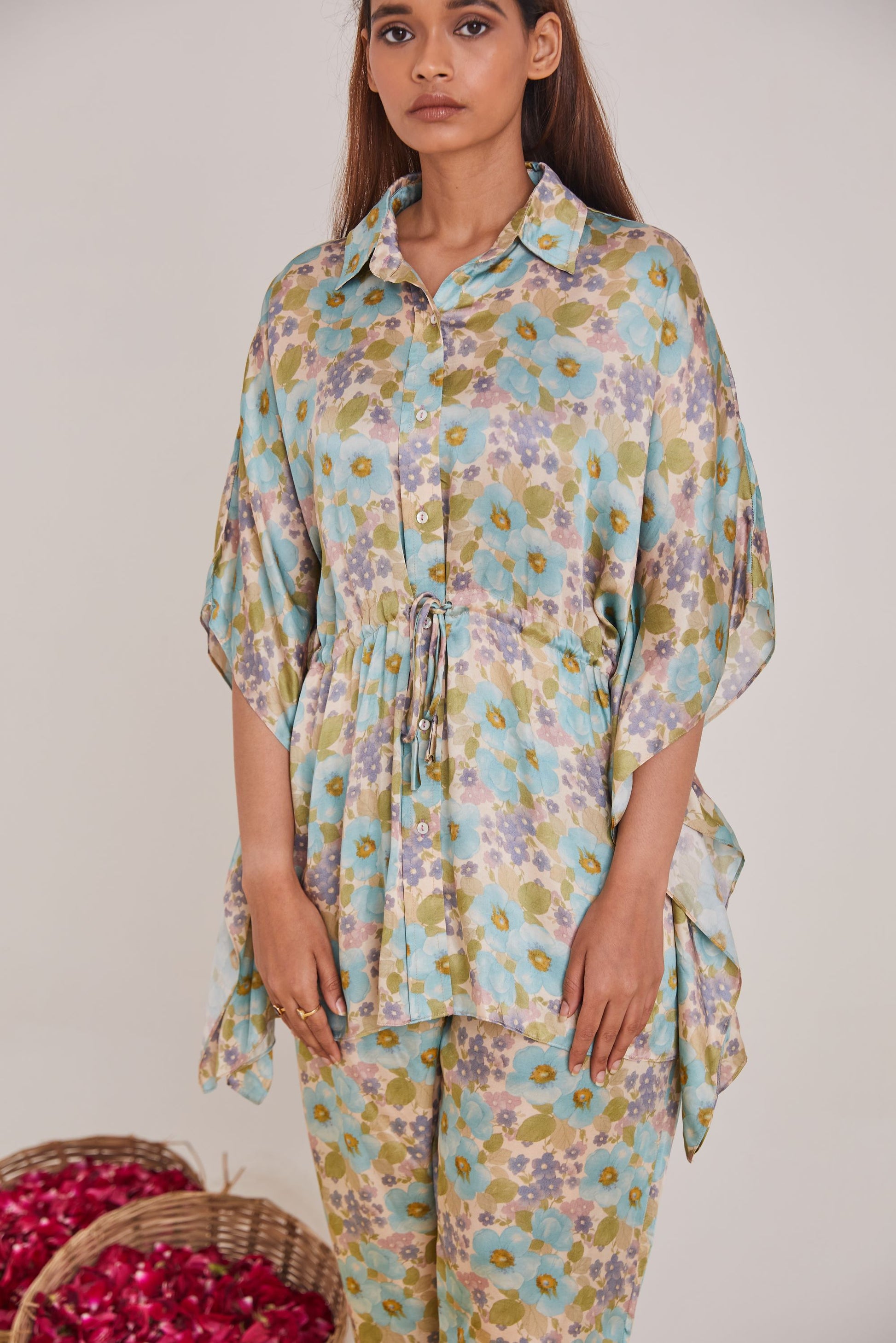 Exploring our love for tropical flowers, the kaftan with drawstring tieup create a Bohemia mood for spring.
