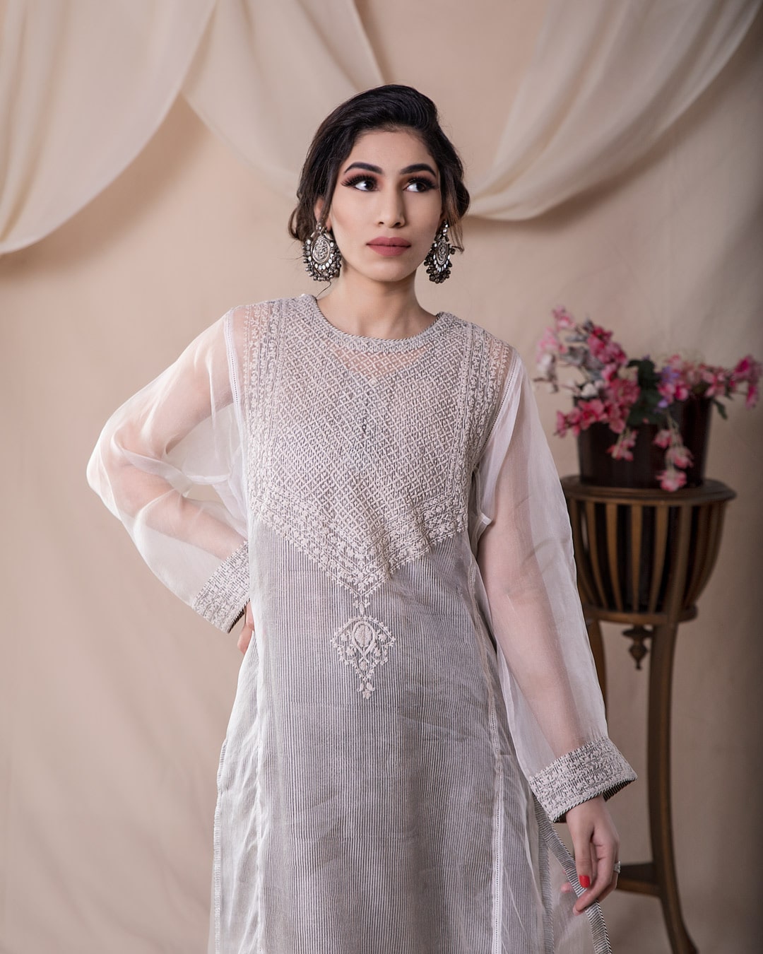 Fabric: kurta -Silk organza duppata – chanderi inner – chanderi