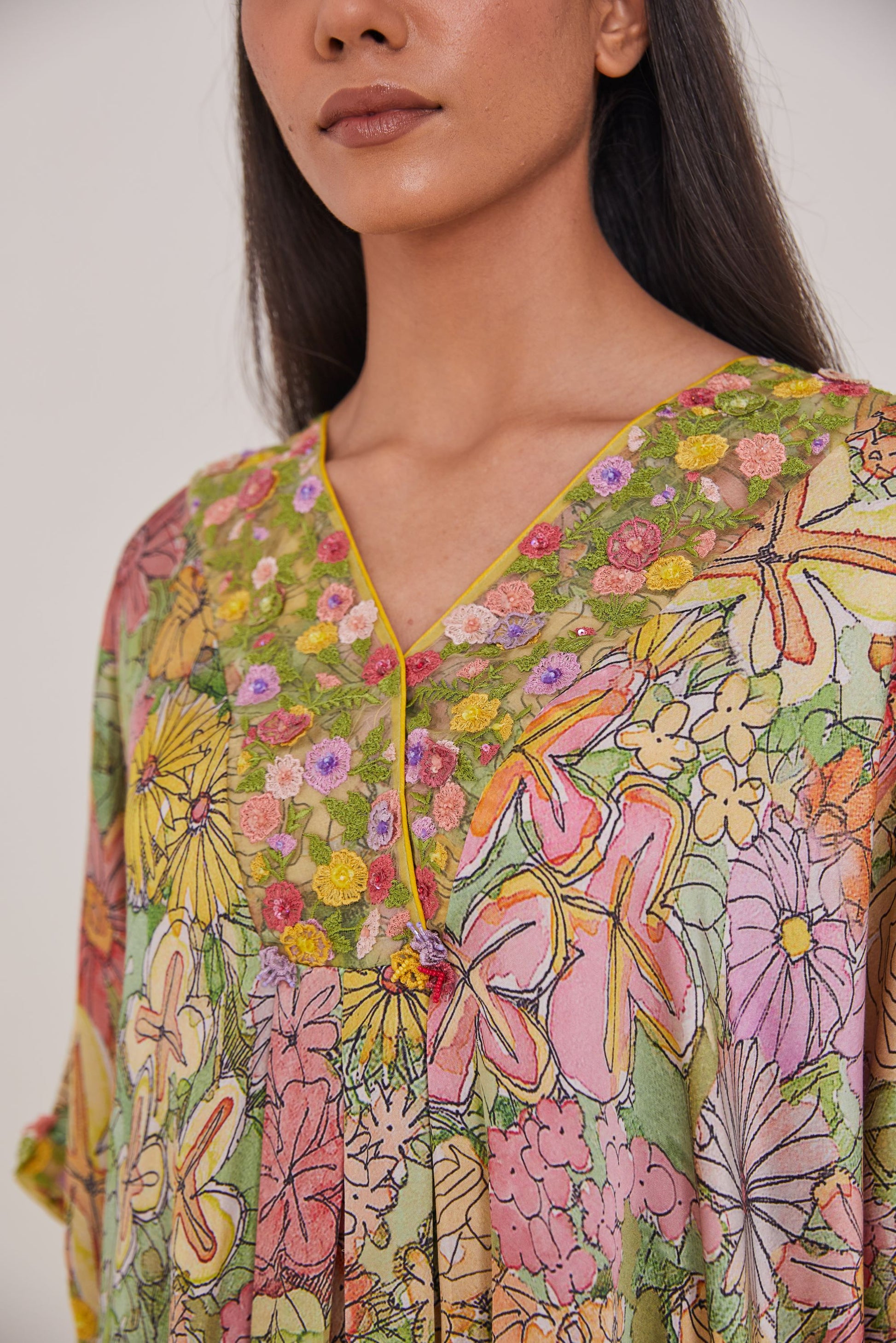 Exploring our love for tropical flowers, the kaftan with delicate floral embroidery create a Bohemia mood for spring.