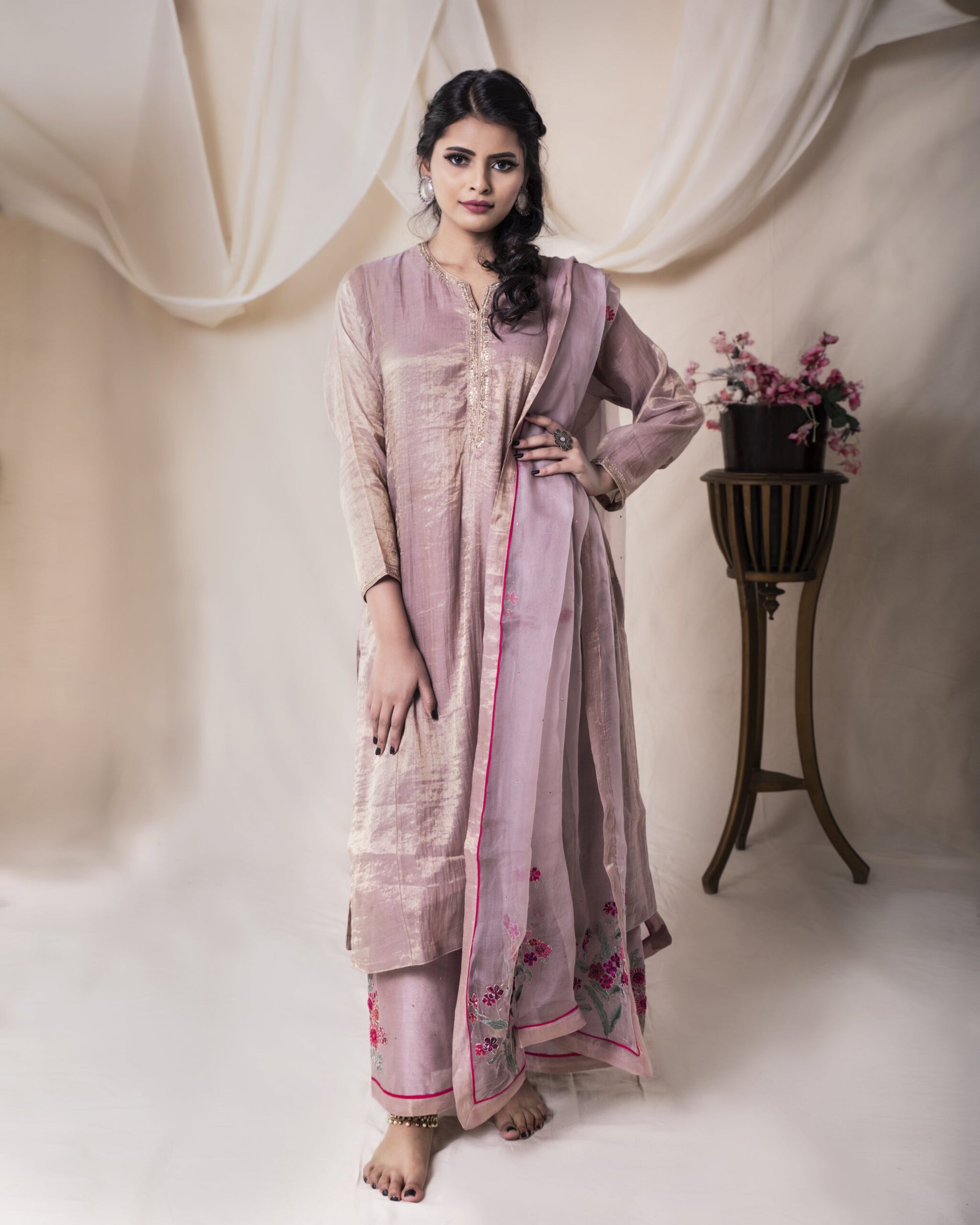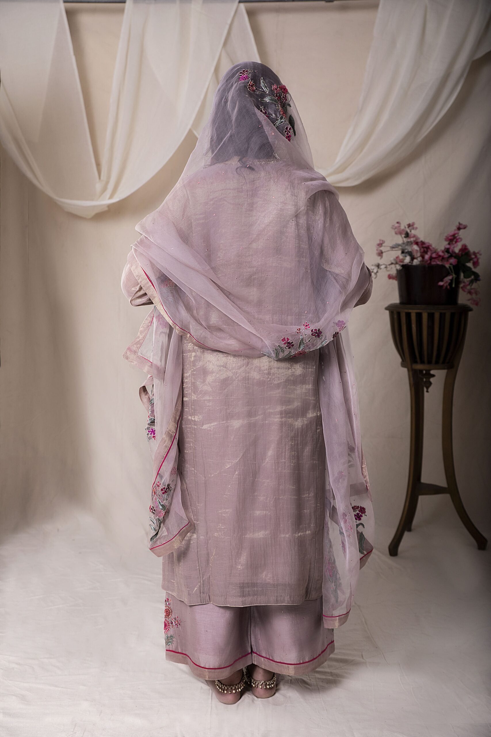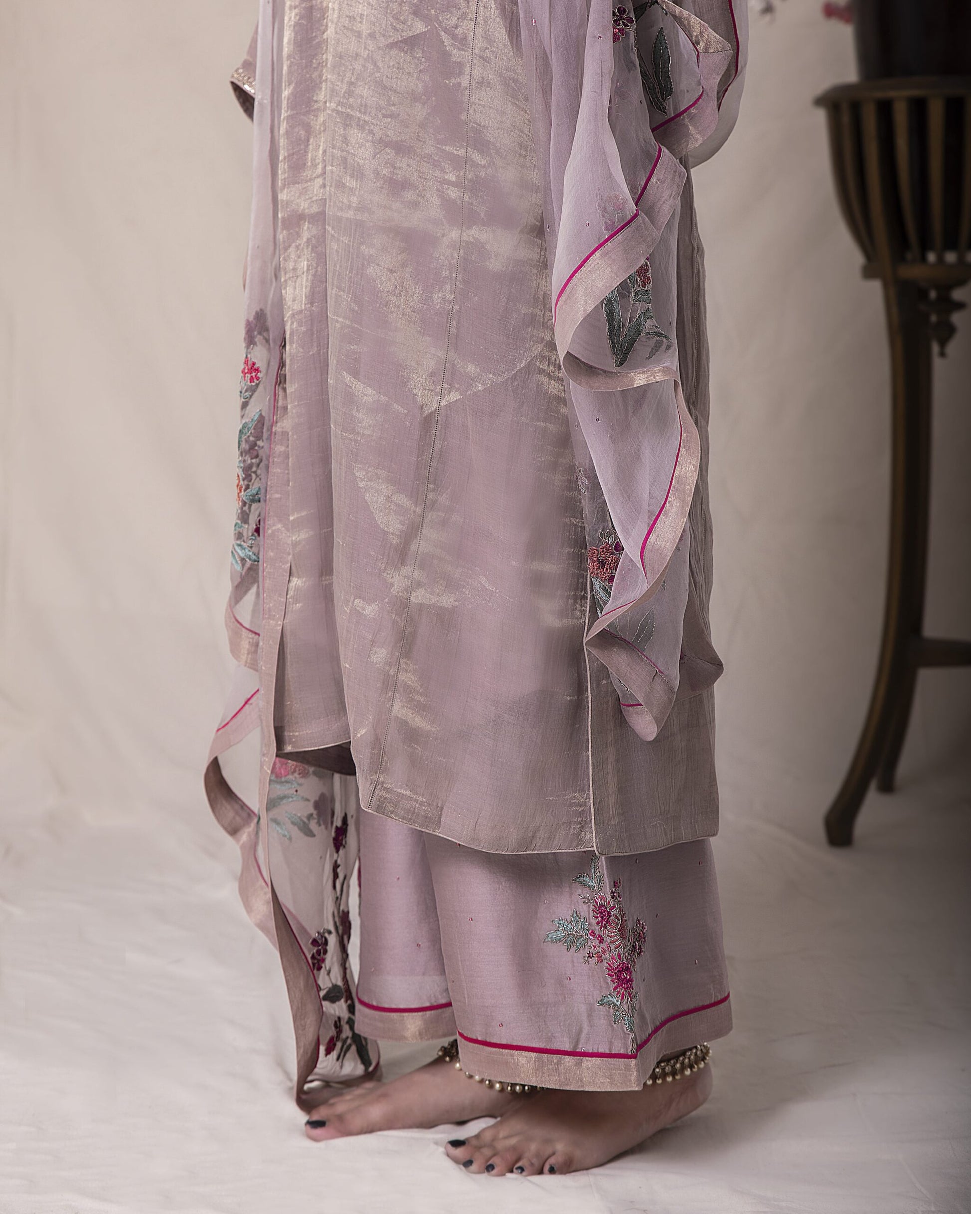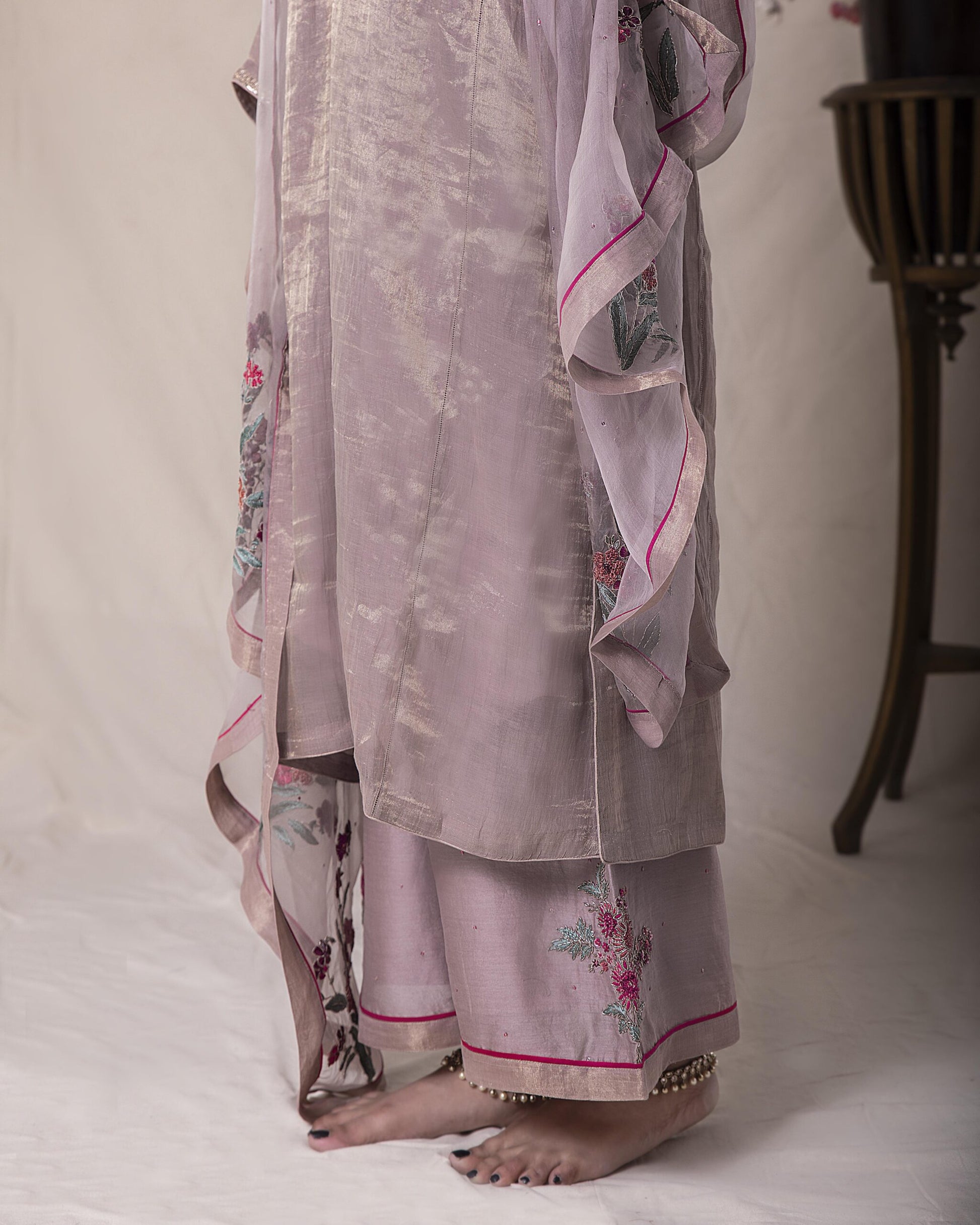 Fabric: kurta – tissue pallazo chanderi duppata – silk organza