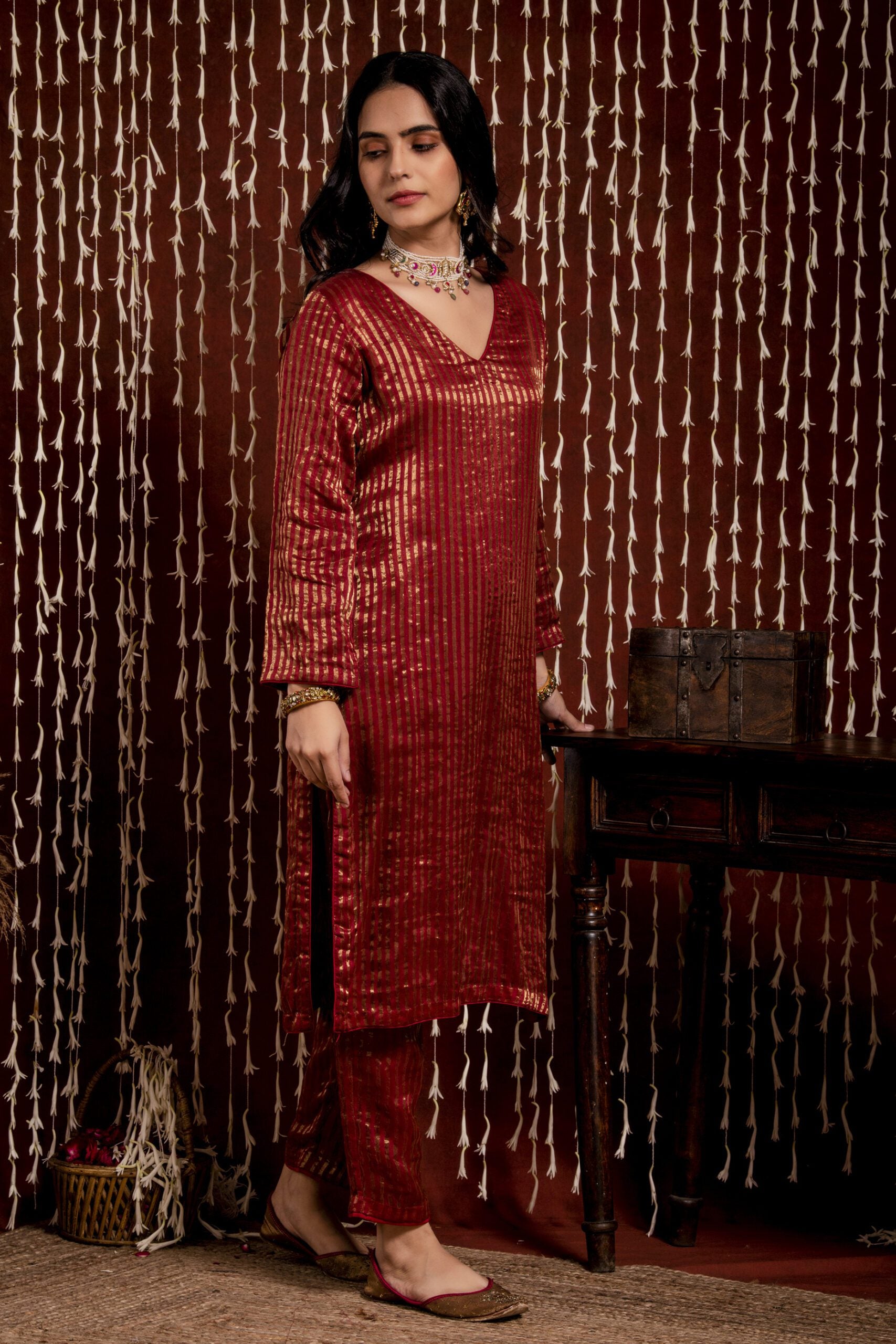 Fabric: kurta -stripe chanderi pant- stripe chanderi
