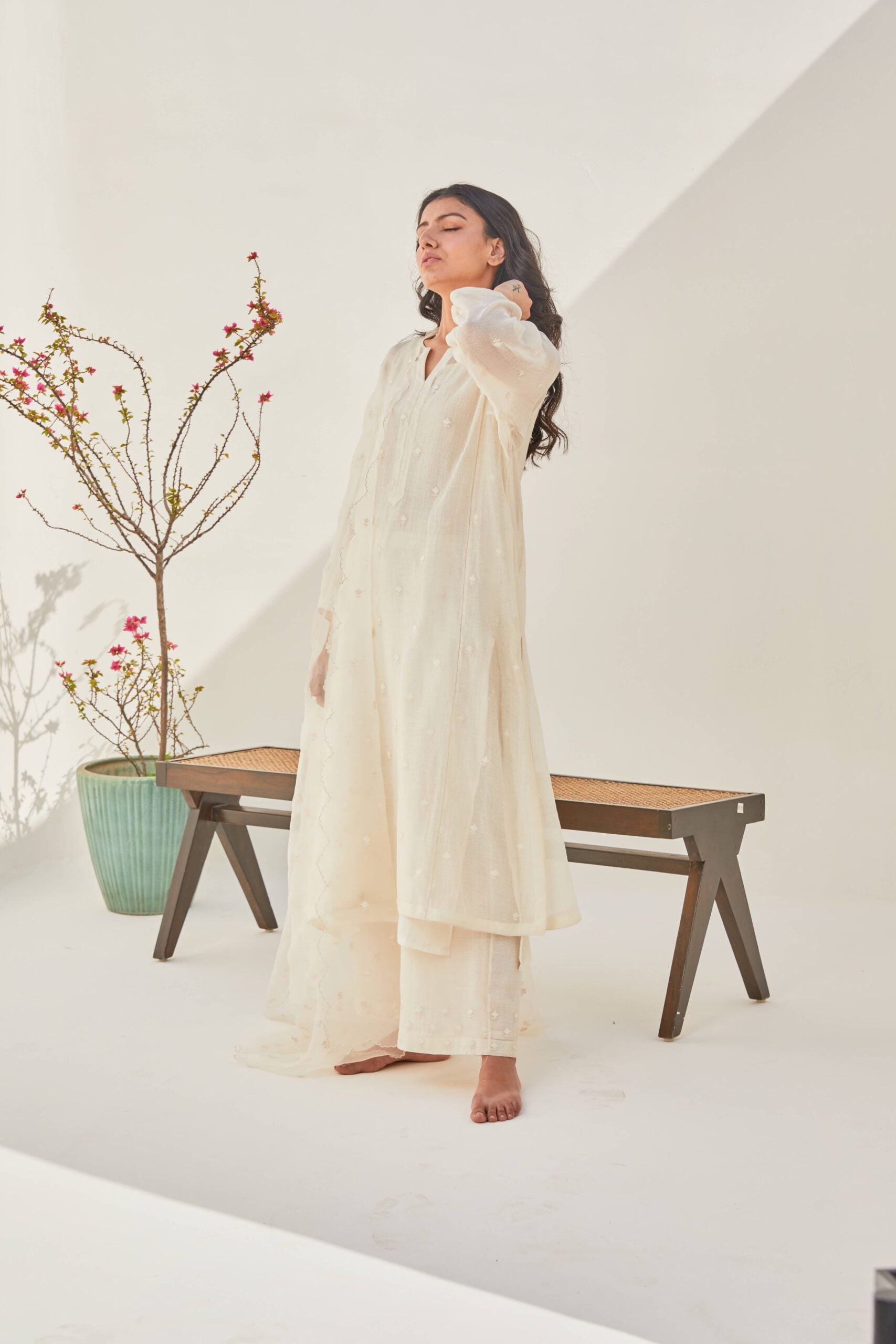 Color: kurta – ivory pallazo – ivory duppata -ivory